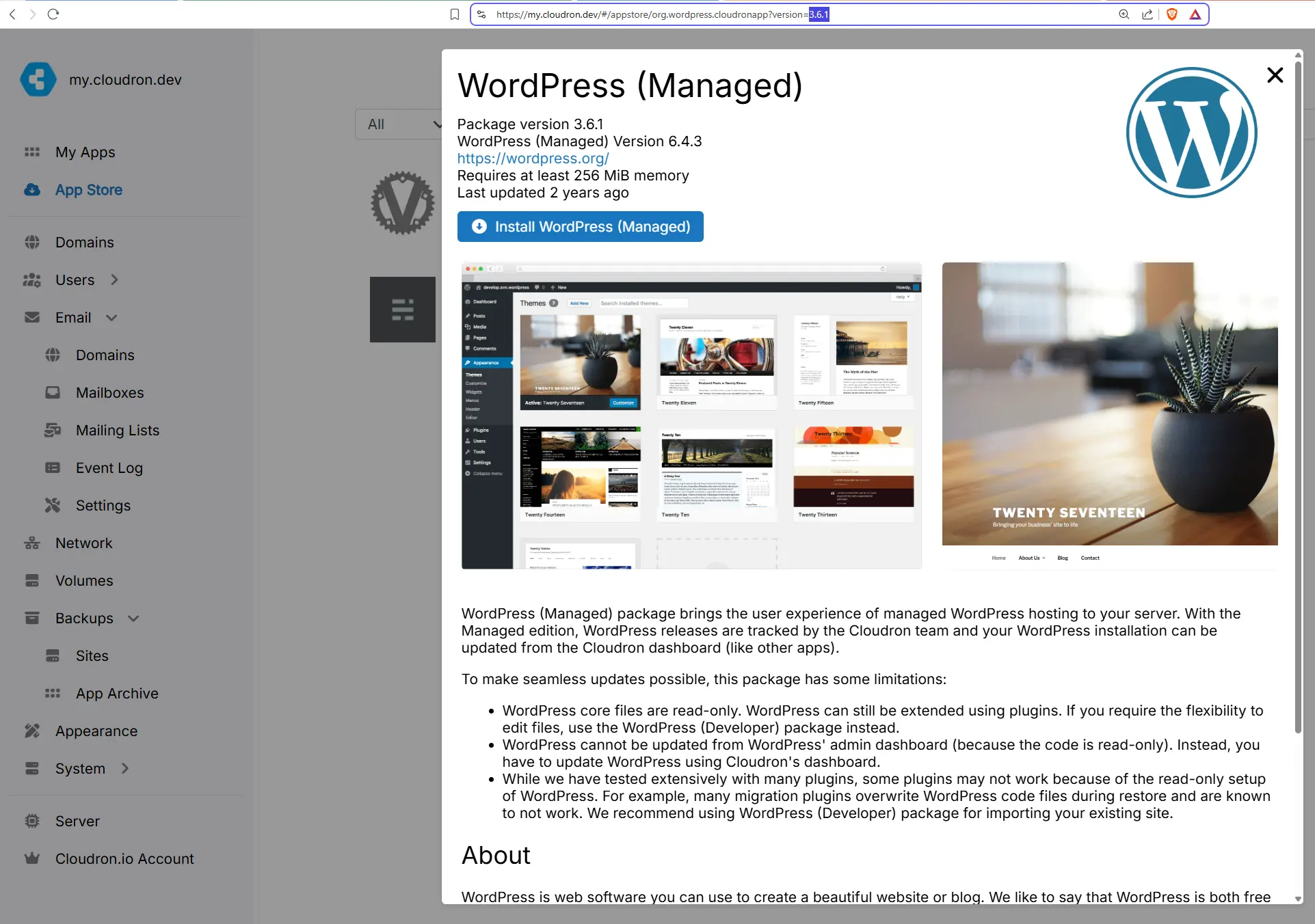 to install older packages and older versions of the app, as long as the Cloudron version supports it.
