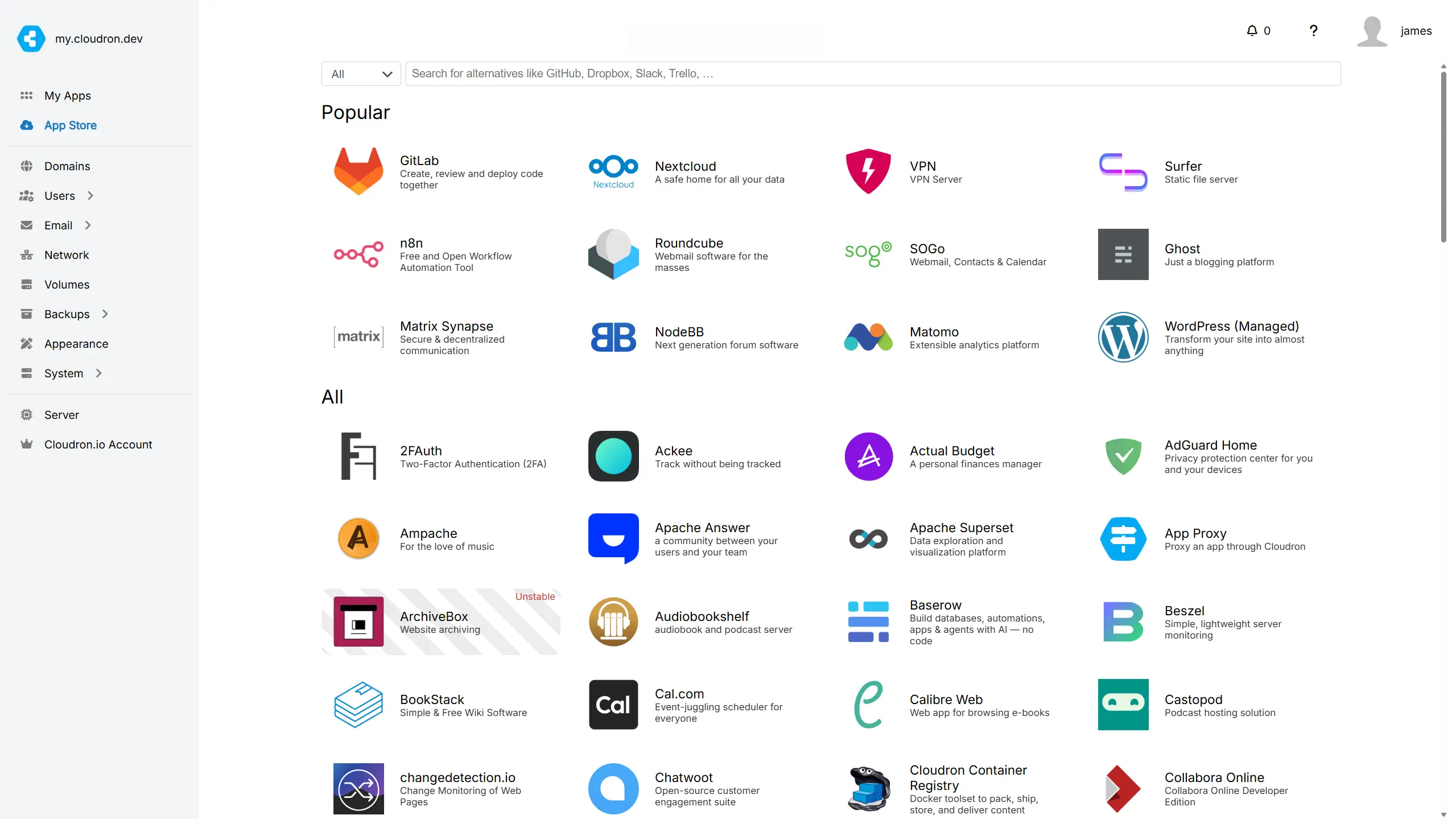 open source and available at https://git.cloudron.io/cloudron . Each app package is in it's own repository