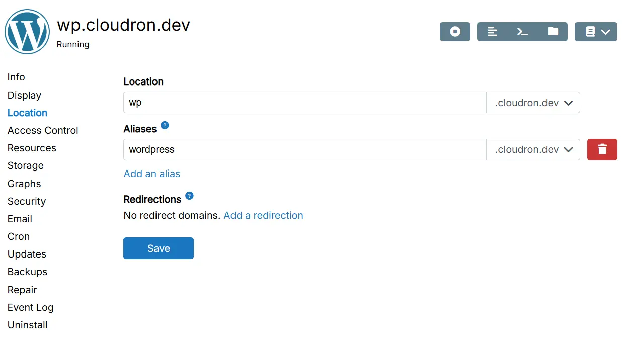 blog.dev to make the app available at blog.dev.smartserver.space.