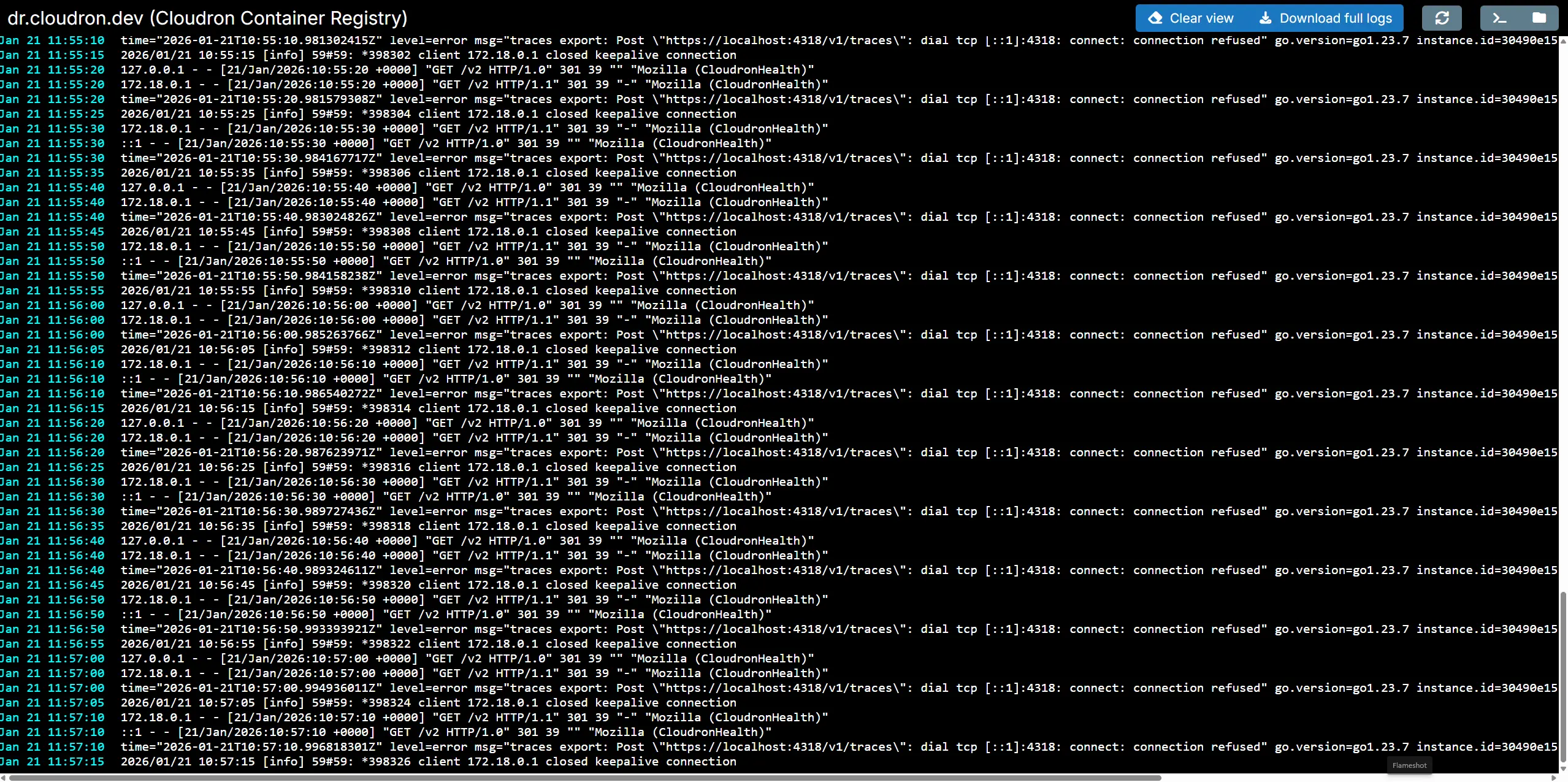 When an app runs out of memory, Cloudron automatically restarts it and sends an OOM notification to Cloudron admins.