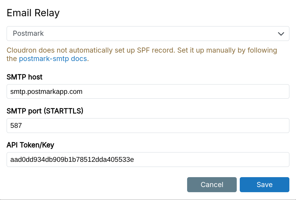 - Cloudron checks against the Zen Spamhaus DNSBL before accepting mail.