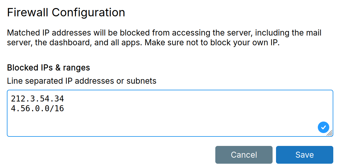 The blocklist blocks IP addresses and/or networks from connecting to Cloudron.