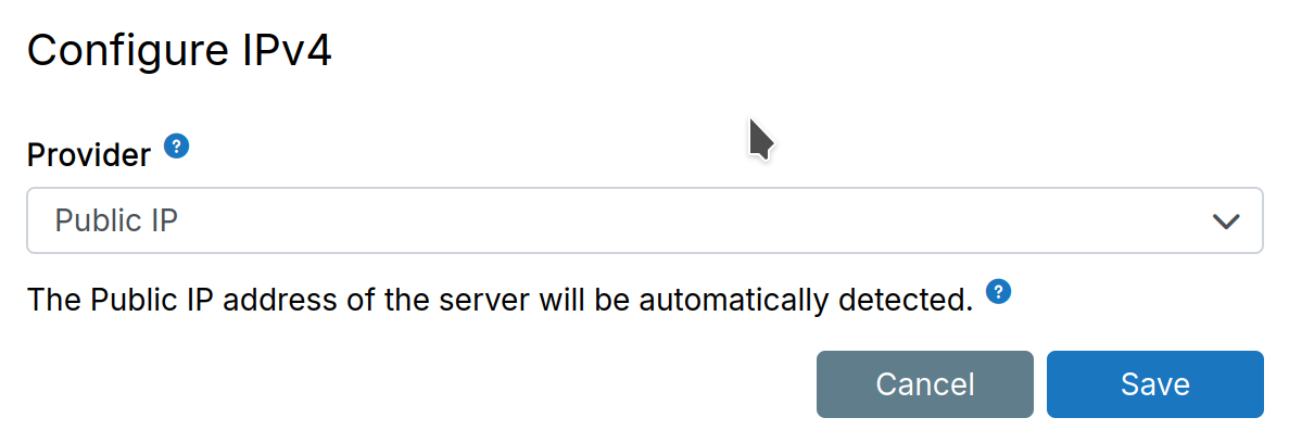 When using the Public IP provider, Cloudron automatically detects the server's