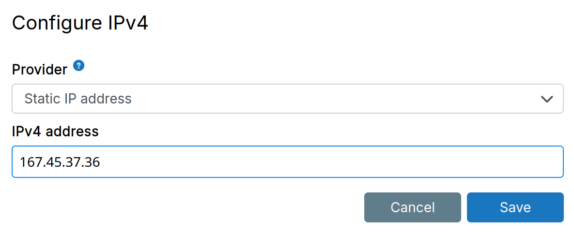 A static IPv4 address (public or private) can be configured here. Common use cases: