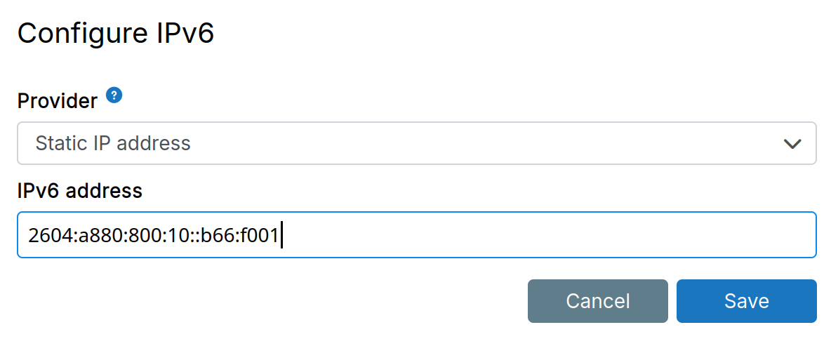 IPv6 block — use this setting to assign a specific address from that block.